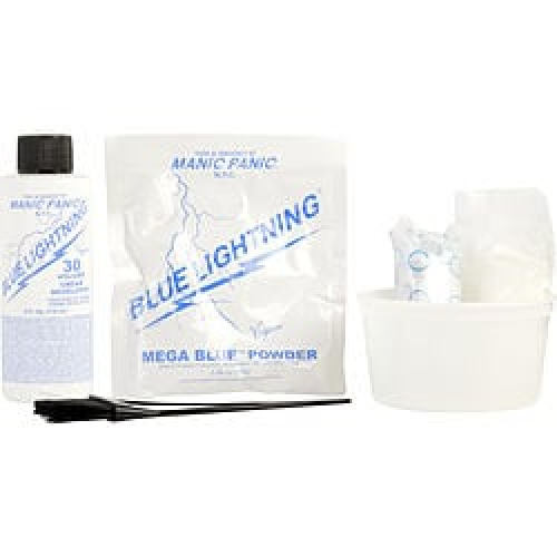 BLUE LIGHTENING SUPER STRENGTH HAIR LIGHTENING KIT: BLEACH POWDER & 30 VOLUME CREAM DEVELOPER & MIXING TUB & TINT BRUSH & PLASTIC CAP & PLASTIC GLOVES & INSTRUCTION BOOKLET